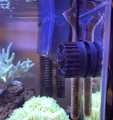 海水30cmキューブ水槽のエダコモンサンゴの先に茶コケが出てしまい、広がり始めていました。 コケが出ている箇所と向きから推測すると、原因は外部式フィルターの排水口からの水流を左側から直接受けたことで、その箇所が弱ってしまったためと思われます。 …