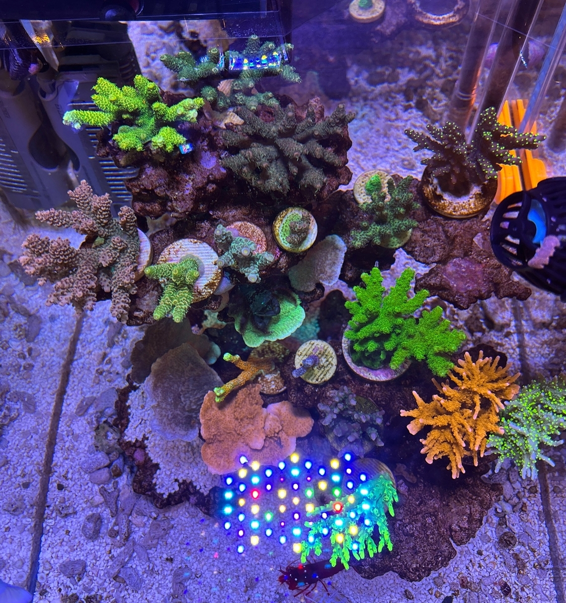まだまだミドリイシ(SPS)初心者ですが、こうやって試行錯誤するのもサンゴ飼育の醍醐味と思っているので、引き続きあがいていこうと思っています。