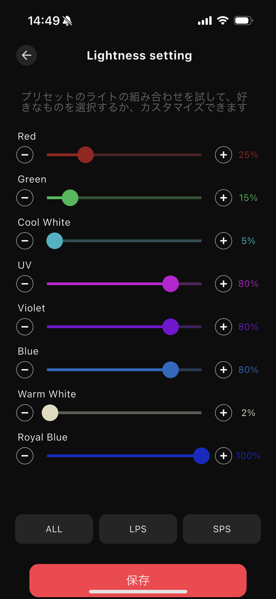 現状の「chihiros NOVA1」の設定は上の通り