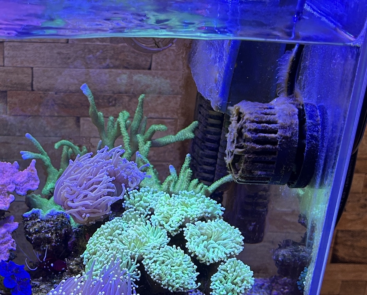 写真はその瞬間の物ではないですが、水草の淡水水槽とサンゴの海水水槽が、どちらも30cmキューブで同じ水槽台に乗って並んでいます。
