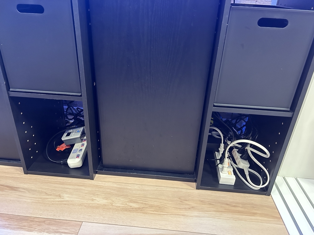 ついこの前に設置したカラーボックスにより、電源タップに水がかかることはありませんでした。